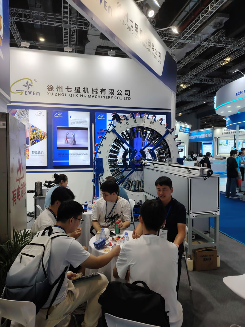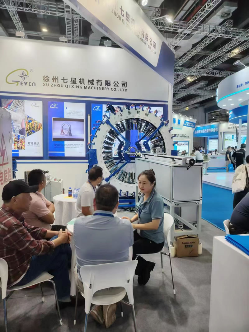 在本次展覽會,徐州七星機(jī)械有限公司展出設(shè)備臥式110-48錠高速編織機(jī),復(fù)繞機(jī),內(nèi)曲面編織機(jī)。