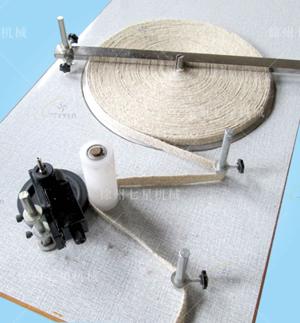 將經(jīng)好紗線之盤頭掛于紗架之上,將紗線依次通過分紗桿,斷紗停電裝置,棕絲片,織造頭調(diào)整所需緯密,工藝安排為花鏈片排列出三一空心組織,使用四列棕框,穿紗依次為1234循環(huán)穿好緯紗,調(diào)整機(jī)器開口時(shí)間,啟動(dòng)機(jī)器開關(guān)即可開始織造。