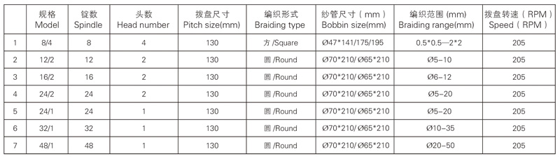 The high speed braiding machine we produce are commonly used to braid many kinds of both round and flat ropes/cords/ laces ( tow ropes, luggage ropes, decoration ropes, aerial ropes, etc) and high pressure rubber hoses.