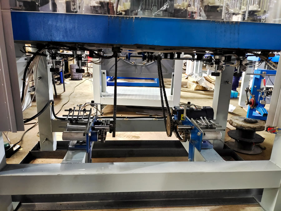 編織Φ6-12mm彈力繩,用Φ5mm鋼板做,外徑一致,內(nèi)芯固定線盤孔,排線架帶擋板,防止壓爛卡盤,需對方提供卡盤樣品,帶收排線架,適用塑料卡盤為30*29 30*36cm。內(nèi)孔38mm。130錠子34個。紗管70*210 68個,客戶另購紗管70*210 96個。帶檢測裝置,帶德力西計米器,帶送膠裝置,膠條1cm寬,帶懸掛式、帶導軌半封閉罩,門提上去時可正常開機,落下即停機,且不可開機。
