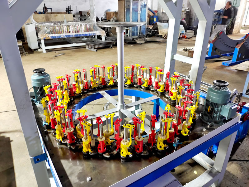 編織銅導(dǎo)電帶 64錠 節(jié)距10-45mm,0.05-0.2mm銅絲,單股***大并絲80。龍門架形式,牽引電機(jī)+減速機(jī)。帶收排線架,線盤Φ800mm。掛輪機(jī)配一套,工具箱一套。1...