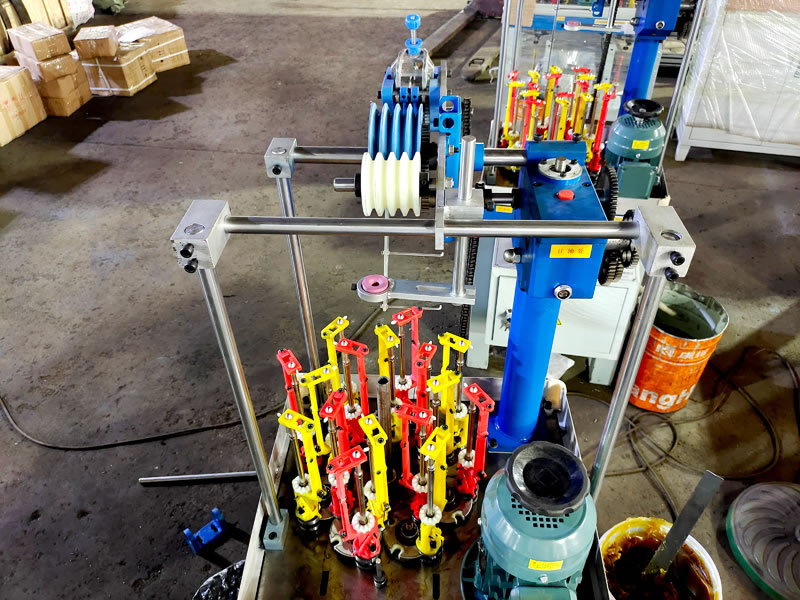 編織松緊繩、彈力繩Φ9mm。150四槽輪加雙壓輥牽引,收線鏈輪比1:1,雙壓輥開深1.5mm圓弧槽,圓弧角度大一些。掛輪機(jī)配一套。90彈錠,紗管47*142。含中心芯管。加寬送膠裝置,斷膠停機(jī)開關(guān),裝中心芯管1個。編織機(jī)380V/50HZ。