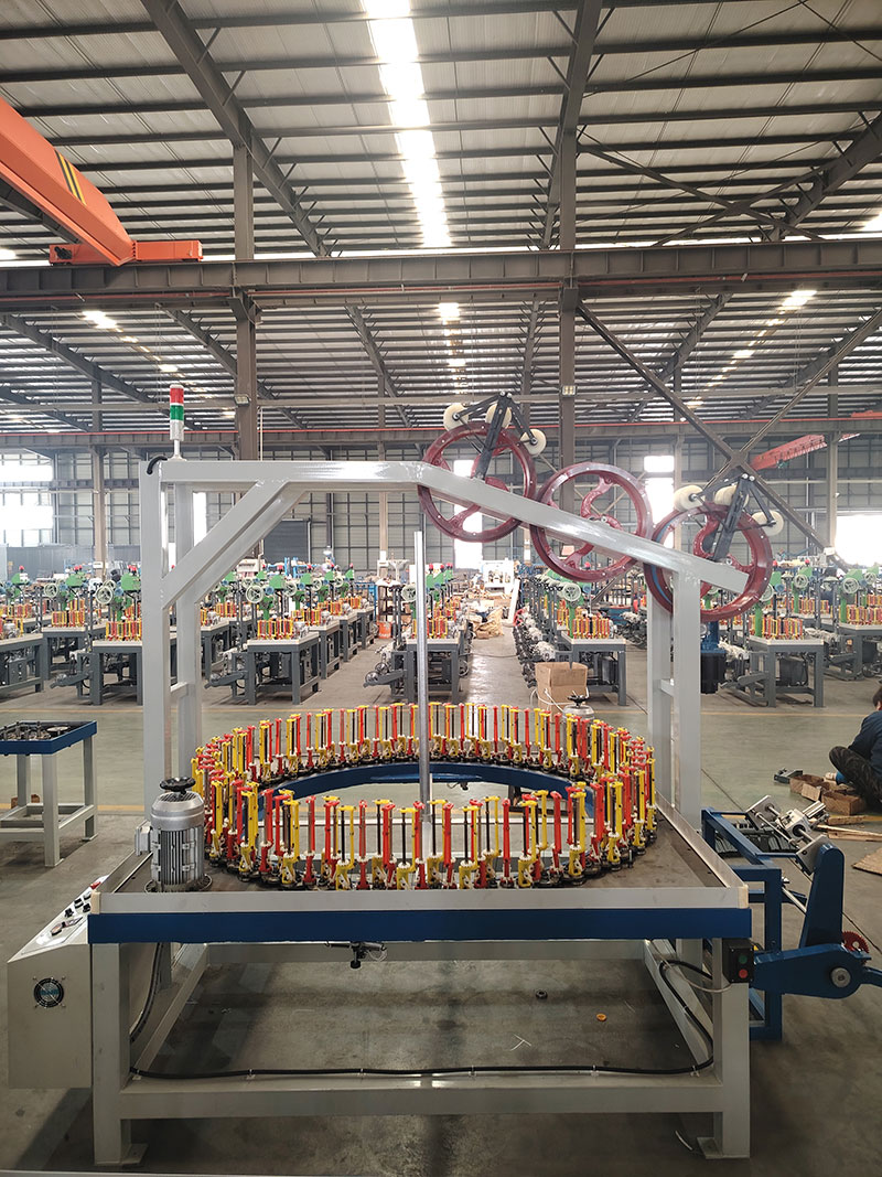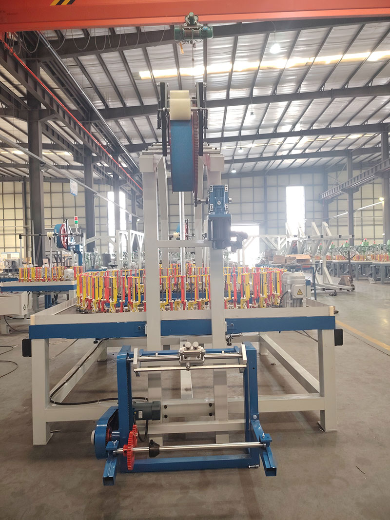 所有編織帶收排線500標(biāo)準(zhǔn)線,編織成品:玻纖套管。材料:玻纖。1、120錠收線方式為3滾筒(滾筒排序非水平,做成漸低的),伺服控制(僅收線,不用觸屏),伺服收線帶點動功能(點動的時候編織不動),編織機為變頻器控制。2、帶收排線的同時需要帶壓輥牽引+落線架做到2用,壓輥用光面的,分線輪要做編織機中間,滾筒在后面,水平軸直接帶動滾筒不要用鏈輪。收線架不要用方管,為保證穩(wěn)定性建議用30粗軸。 3、所有編織的滾筒邊齒要用金屬材質(zhì)。4、排線做成帶角度的,下面卡裝線盤的地方做成螺絲固定的。5、編織機電箱統(tǒng)一都在左側(cè)。編織機配附減震墊,額外帶32個常規(guī)機型減震墊。加裝2色警示燈。6、所有鏈條的位置加裝鏈條防護(hù)擋板。380V三相益電通90錠子(0.6簧),紗管47*142,可纏繞膜密封。