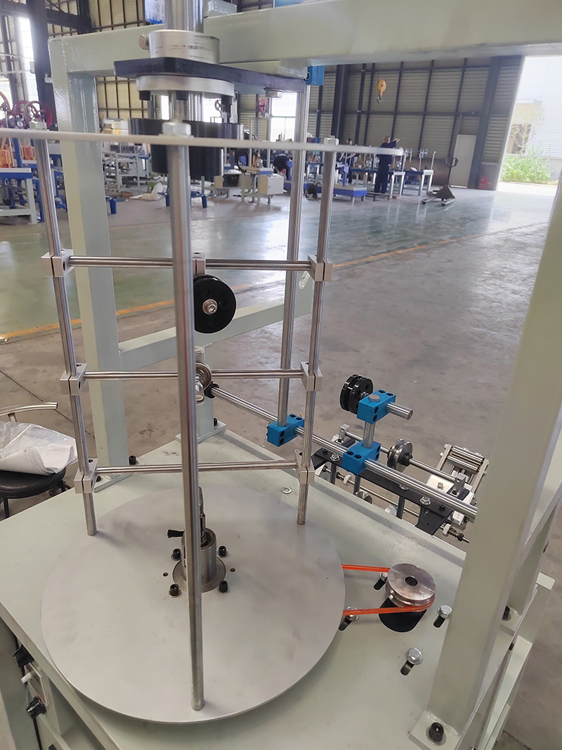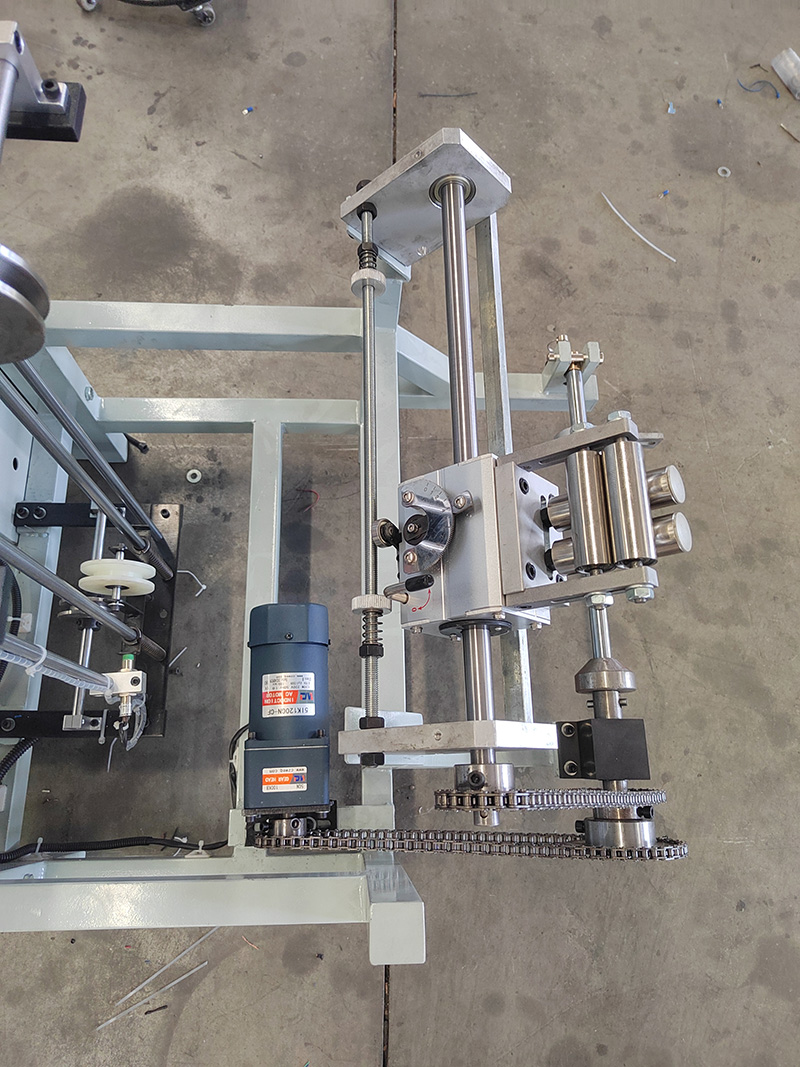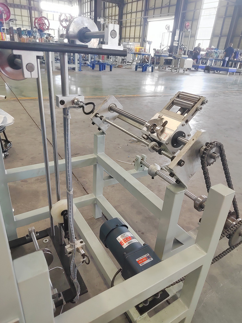 送鉤針,鉤2.5mm玻纖 產(chǎn)品對折直徑160mm,小變頻器控制。四角機(jī)架,機(jī)架要抬高