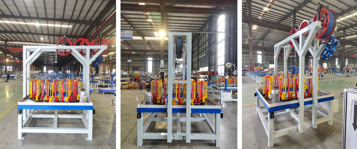 材料:細(xì)銅絲,含撐線盤(pán),380V,三相,益電通。編織機(jī)編織銅導(dǎo)電帶,三個(gè)大平滾筒牽引,后帶壓帶輪,雙變頻調(diào)速,編織速度和牽引速度均可調(diào)整,帶斷絲自停裝置。 168電線錠子,1.2簧,紗管5*280,可纏繞膜密封,可現(xiàn)場(chǎng)安裝調(diào)試。
